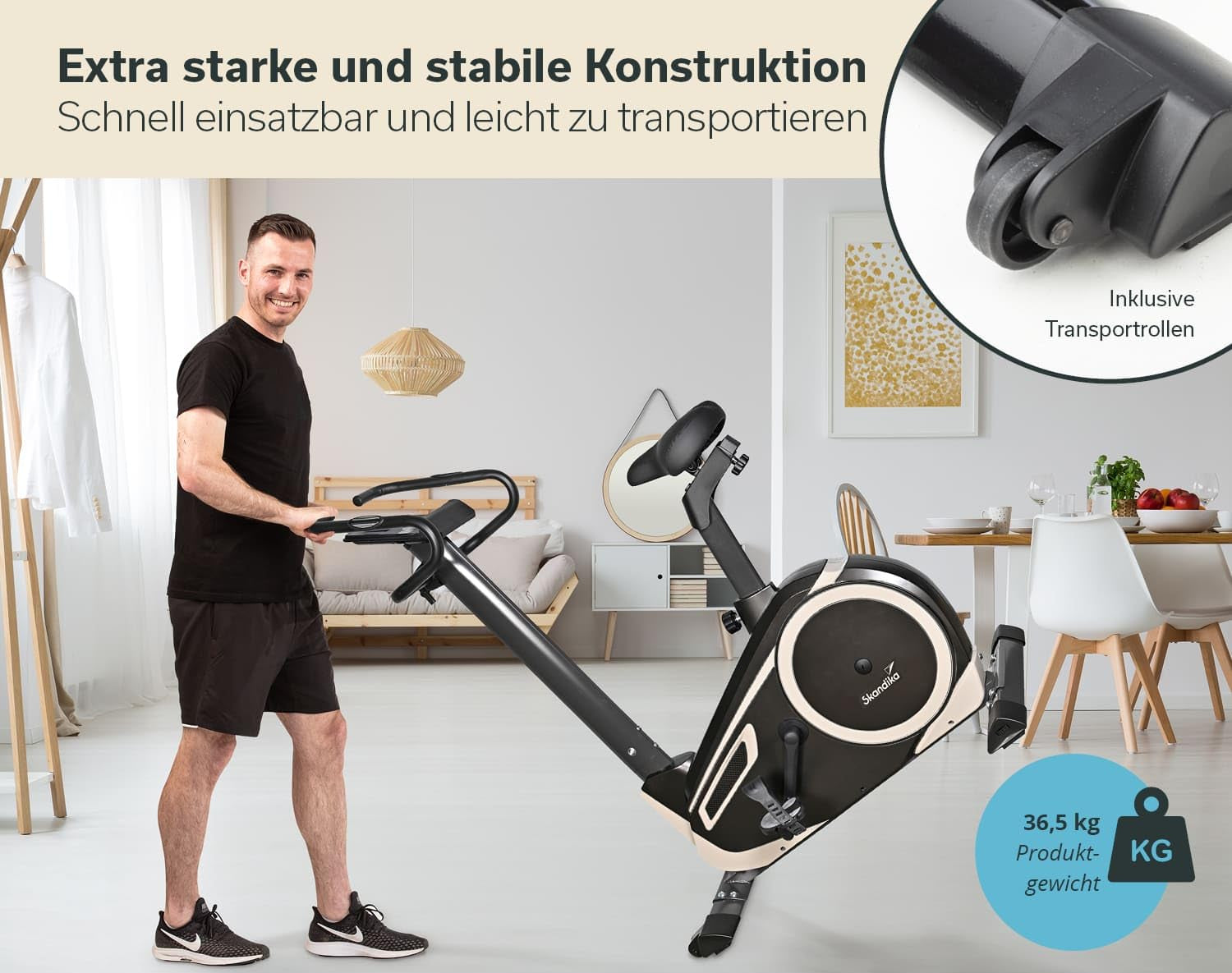 - [Einfache Montage und platzsparende Aufbewahrung]: Der zu 80% vormontierte Heimtrainer ist in nur 20 Minuten einsatzbereit. Im zusammengeklappten Zustand benötigt er lediglich 0,18 m³ Stellfläche. Praktische Transportroller erleichtern das Verschieben und ermöglichen eine flexible Raumnutzung. Ob Sie platzsparend trainieren oder eine mobile Lösung suchen - dieses kompakte Fitnessgerät ist die ideale Wahl für Ihr Heimstudio.